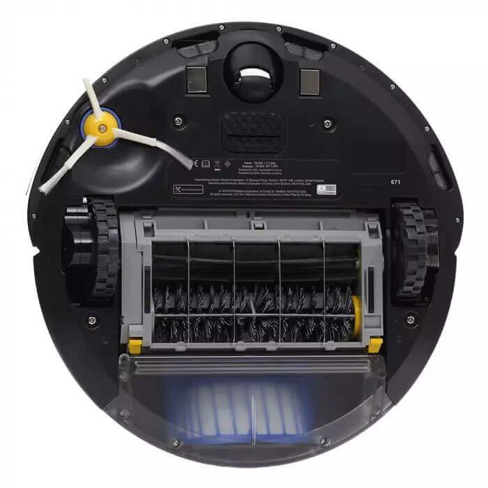 The iRobot Roomba 671/675 robotic vacuum cleaners lack a modern navigation system or mapping function, so their basic movement patterns are erratic. To navigate indoors, the manufacturer equipped them with infrared obstacle sensors in the bumper and height sensors on the bottom (iAdapt Navigation). The iRobot Roomba 671/675 also features a mileage sensor located in the swivel caster. A turret with an infrared receiver is mounted on the top of the protective bumper, which is used to locate the docking station and the optional virtual barrier.