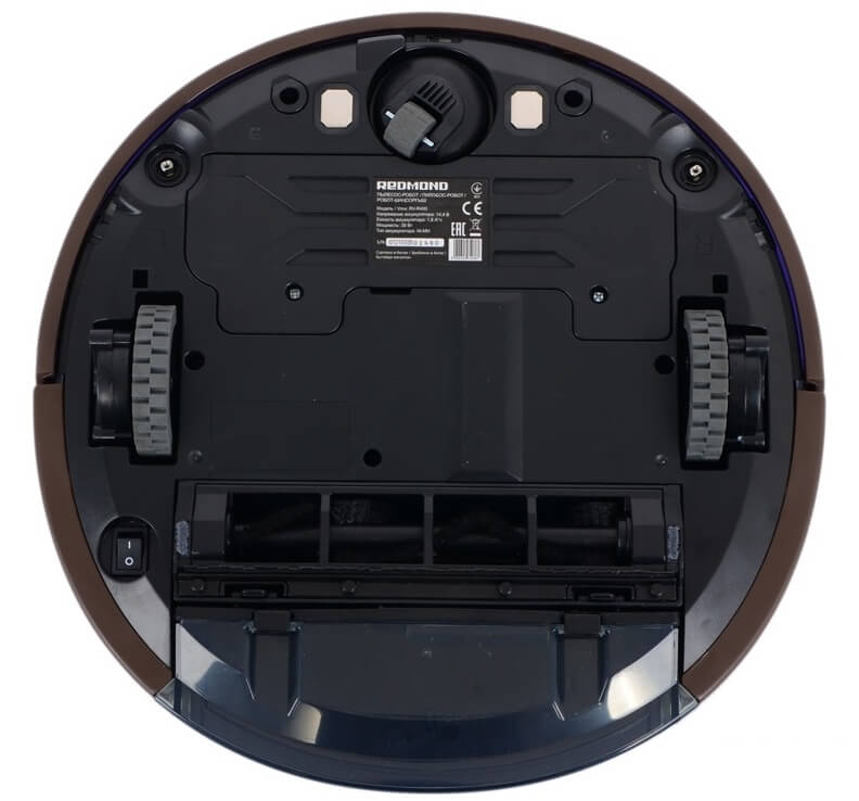 The Redmond RV-R400 robot vacuum cleaner does not require manual installation on the charging base: the device is equipped with an infrared sensor that allows it to locate the base and automatically navigate to it for recharging.