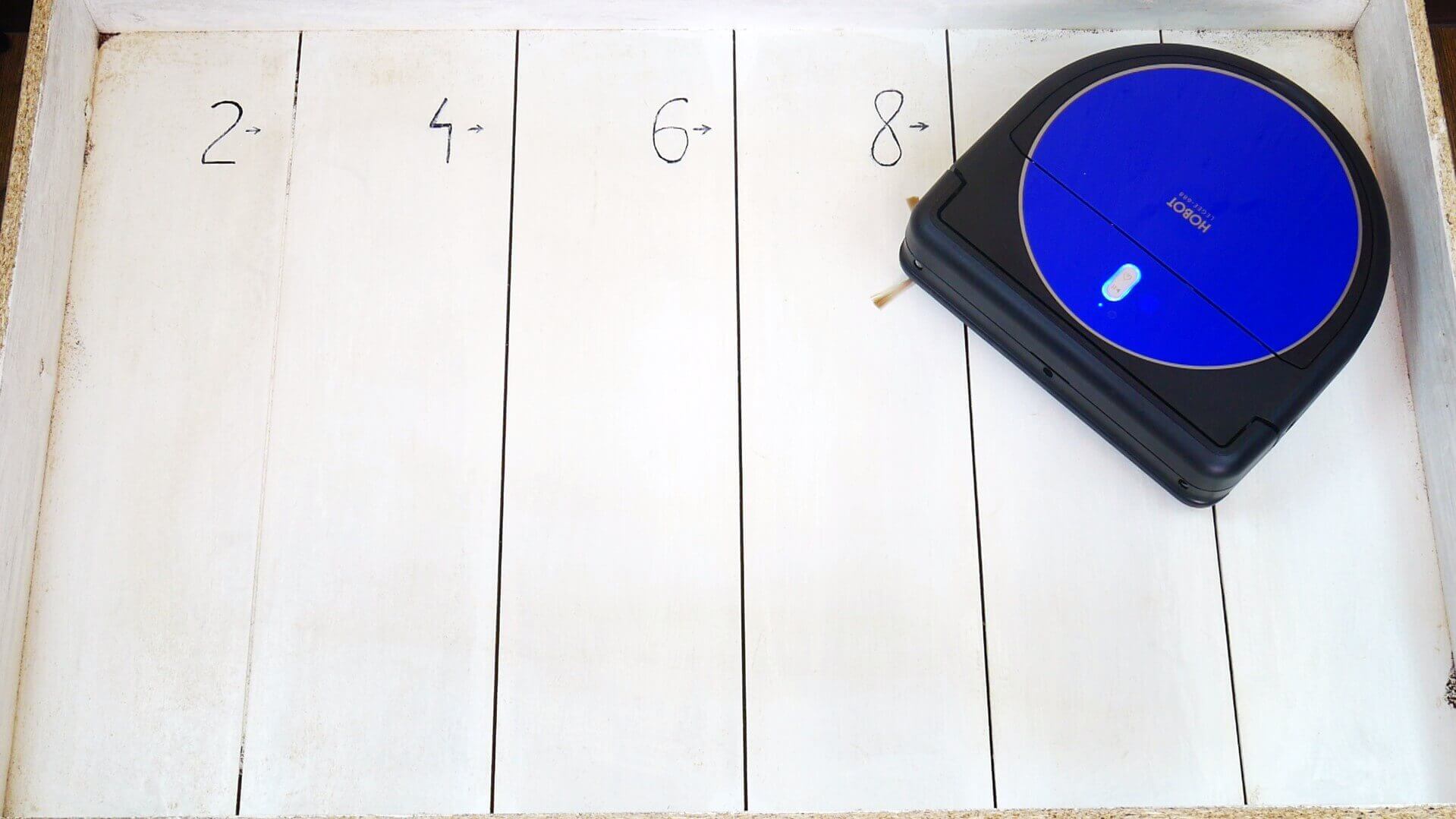 Legee 7, on the other hand, first sweeps the perimeter of the room and then cleans the available area in a zigzag pattern. It also didn't clean around the box, but it did manage to circle one of the chair legs, suggesting that this algorithm is programmed to do so. It didn't get stuck on the dryer, and the cleaning took 9 minutes and 48 seconds. The lidar definitely helps this robot clean faster without compromising quality.