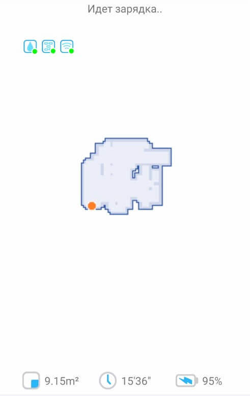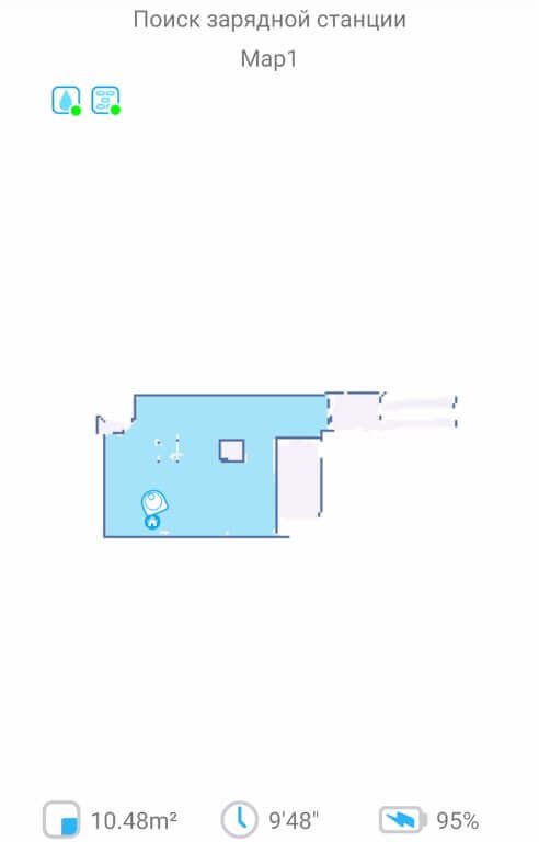| Continued cleaning after charging | — | 10:55, 10.96 sq.m. |