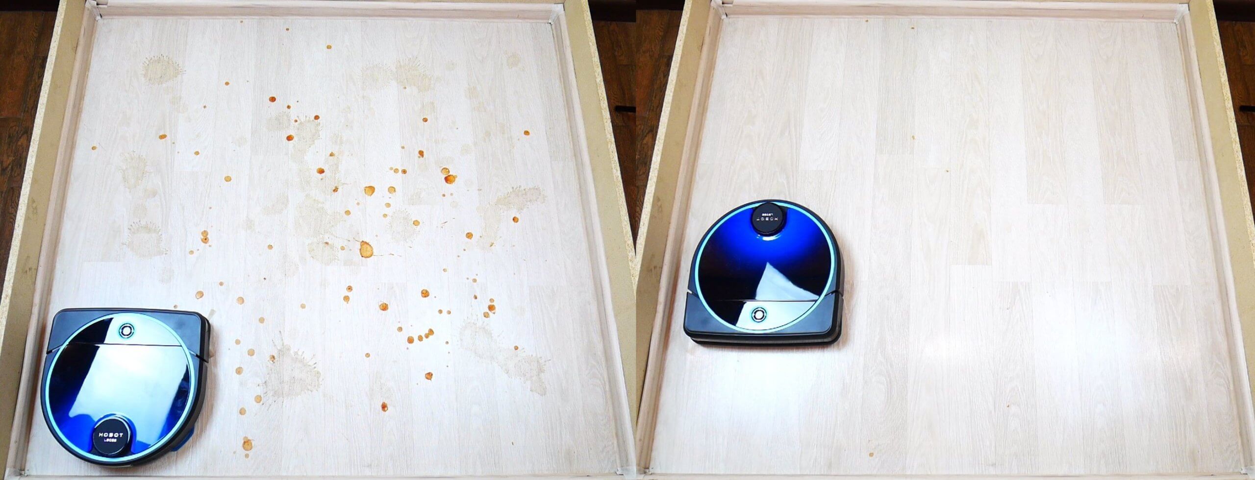 As for removing dried stains from the floor, the robots also demonstrated equally high cleaning performance. Both the Legee 688 and Legee 7 were able to remove dried sauce and coffee stains from the laminate flooring. So, it's essentially a tie.