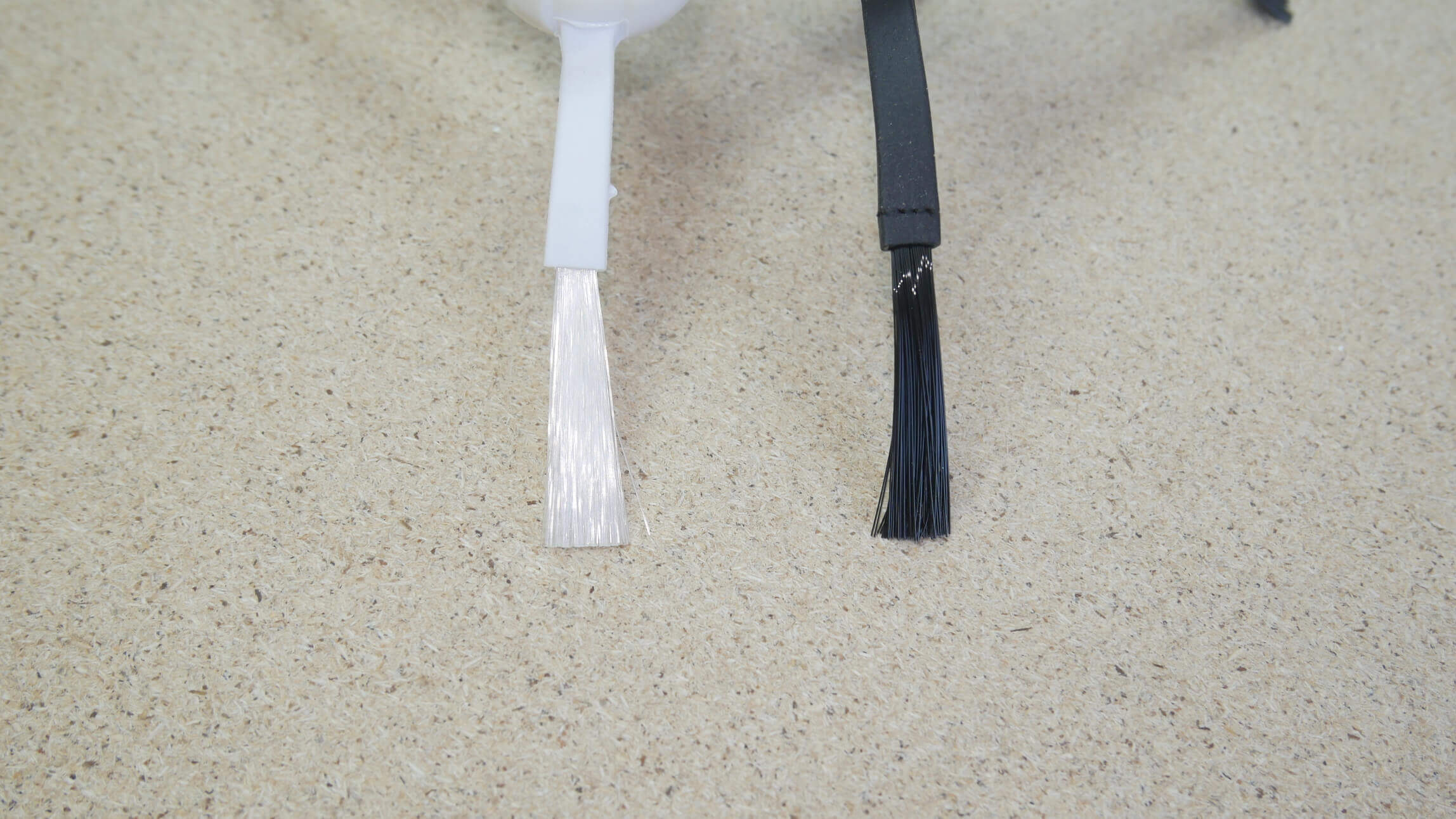 The Chinese brush is also well made. The bristles are more resilient, and there are slightly more bristles in the tufts. The center with the mounting screw is not offset on this brush. There are no complaints. The soldering is neat. Due to the more flexible materials and the fact that the original brush is additionally stitched, it is the preferred choice in this comparison.