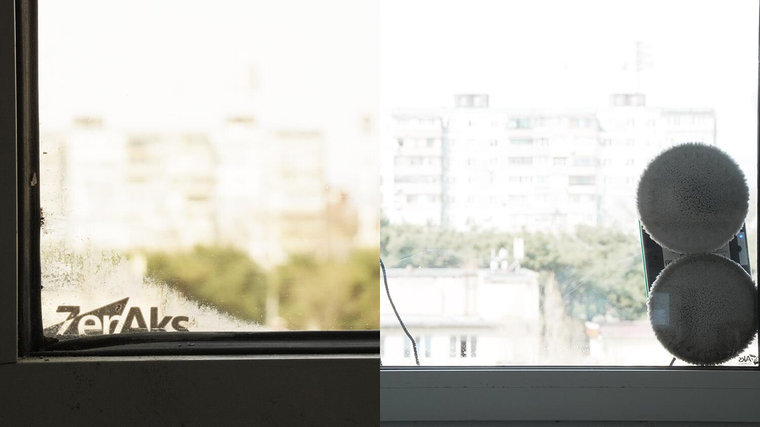 Y finalmente, pasemos a las pruebas. Primero, comprobaremos cómo el Gadget W200 realiza su tarea principal: limpiar las ventanas desde el exterior. También podremos evaluar su navegación. La primera pasada del robot por las ventanas recoge toda la suciedad. Se recomienda no mojar las toallitas para evitar que el robot manche el cristal. También desactivé el rociador de agua automático.