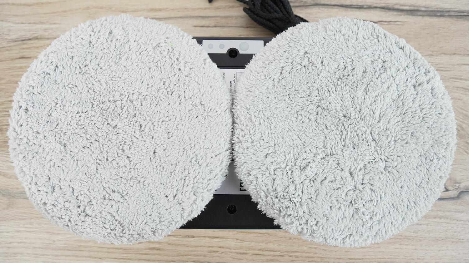 Los indicadores de estado del robot también están duplicados en la parte inferior. Las toallitas tienen el diseño habitual. Los soportes se extraen y reinstalan fácilmente del robot.