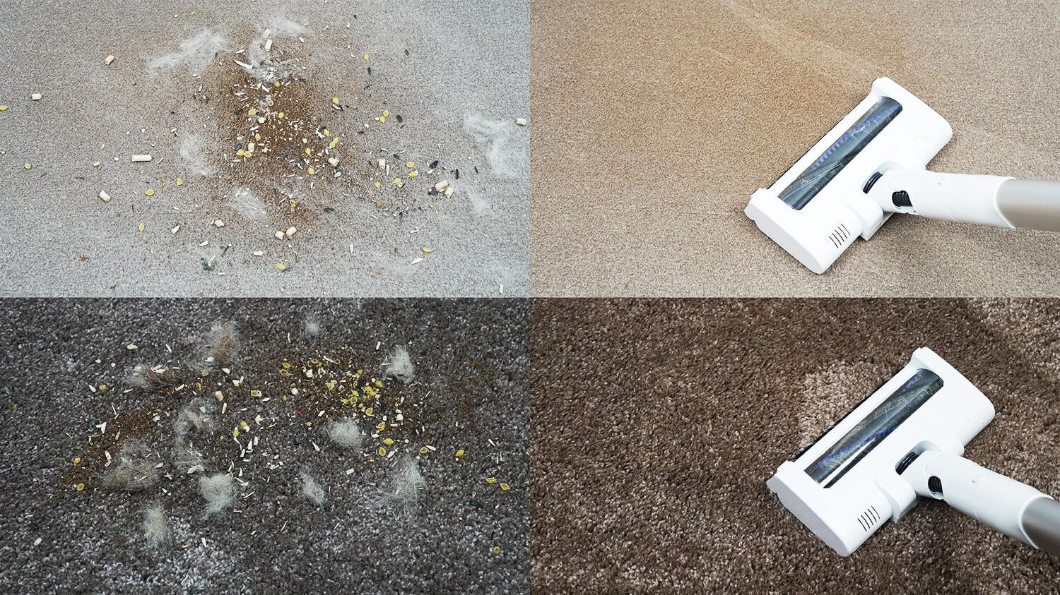 Hablando de limpieza de alfombras, el rodillo también se atasca al encontrar gránulos de relleno, por lo que el accesorio tiene problemas con cualquiera de los rodillos. Si no hay tales residuos, el rodillo limpia bien tanto alfombras de pelo corto como de pelo medio.