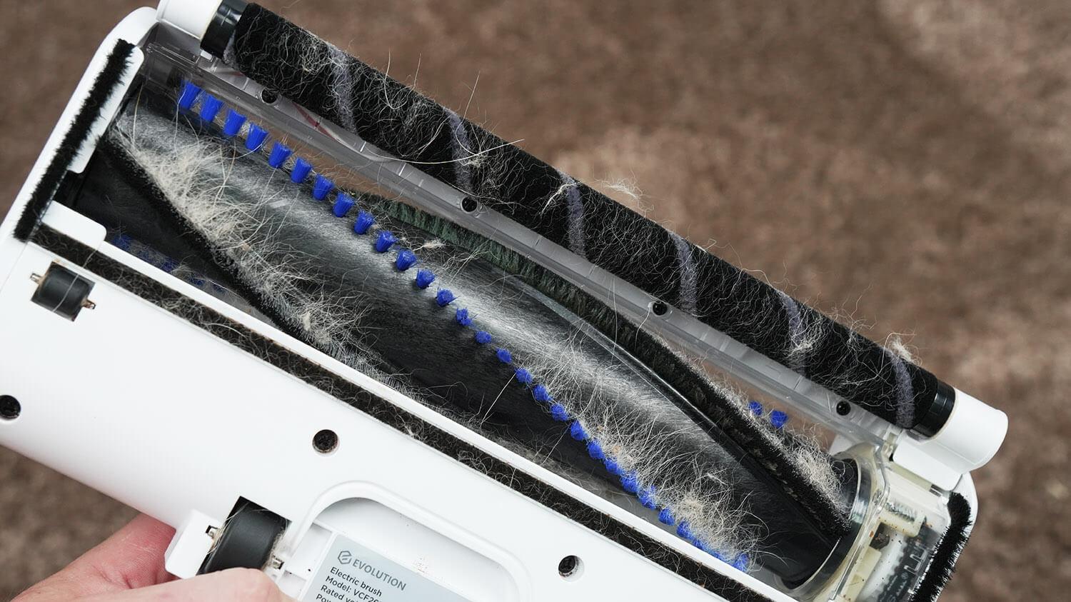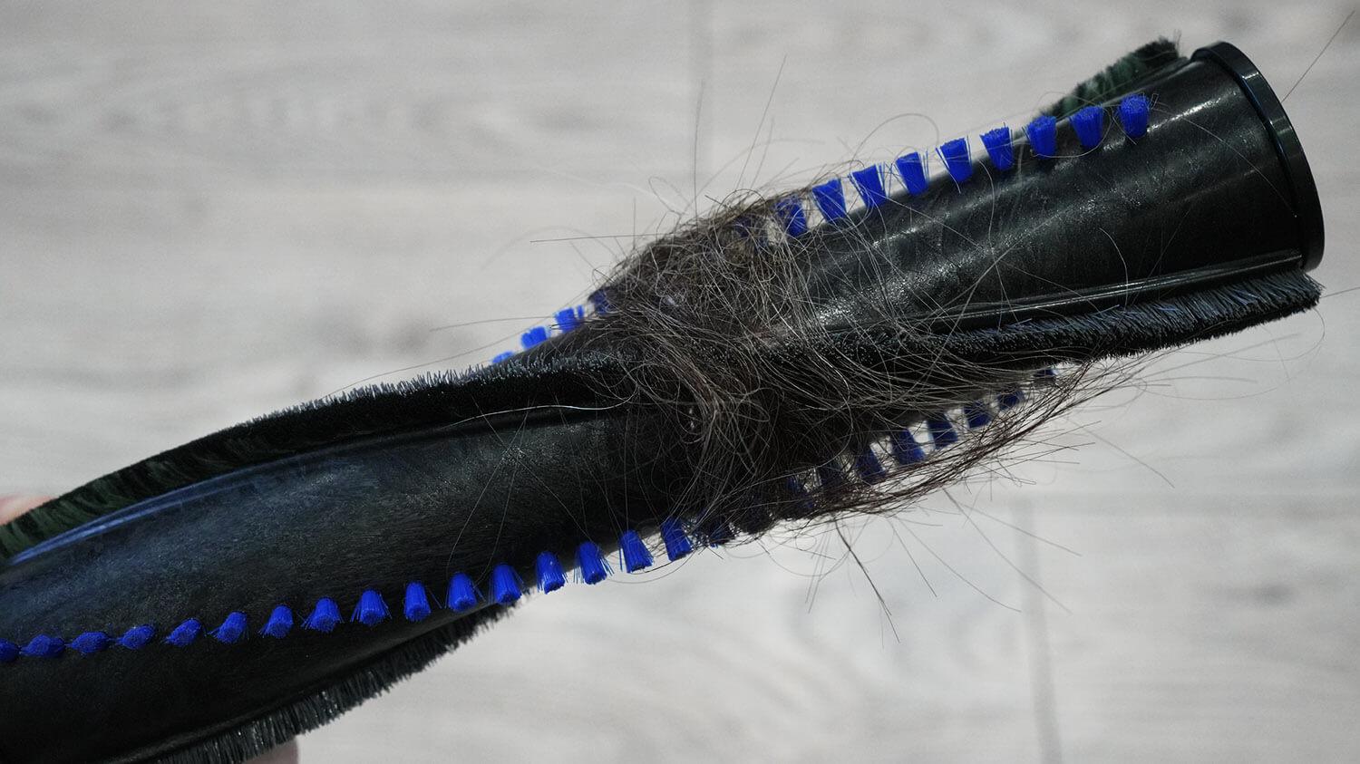 Hablando de puntos ciegos, el accesorio recoge bien los residuos en las esquinas y a lo largo de los zócalos, y, lo que es igual de importante, el rodillo de pelusa quedó limpio después de la prueba. El rodillo auxiliar recogió un poco de pelo, pero nada grave.