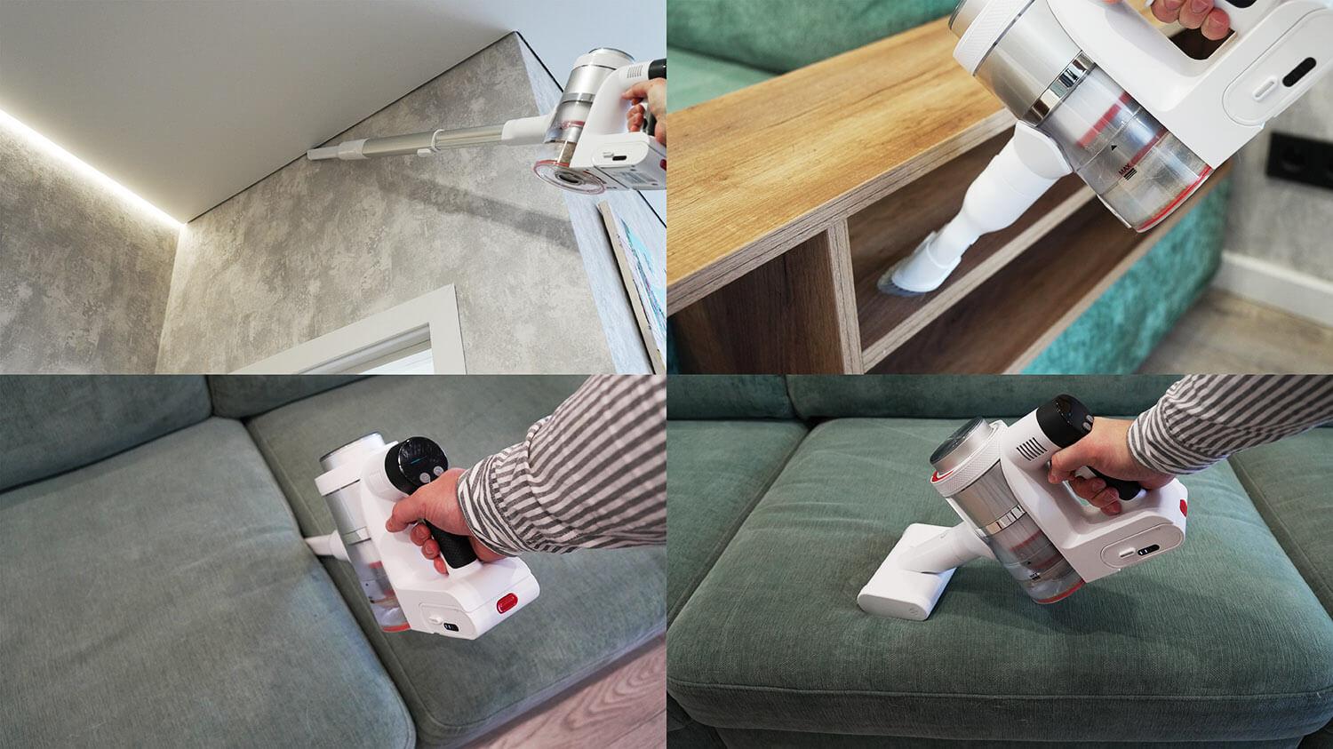 También vale la pena señalar que gracias a los tres accesorios adicionales, puede limpiar superficialmente la tapicería, limpiar donde el accesorio principal no puede llegar e incluso limpiar el interior de un automóvil, si es necesario.