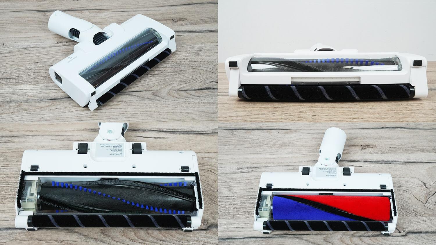 Hablando de los accesorios incluidos, el cepillo turbo para limpiar muebles tapizados y colchones es una adición ingeniosa. Detrás del cepillo hay una lámpara UV para la desinfección de superficies. Se activa cuando las ruedas tocan la superficie. El cepillo turbo se desmonta fácilmente sin herramientas y cuenta con insertos de cerdas elásticas.