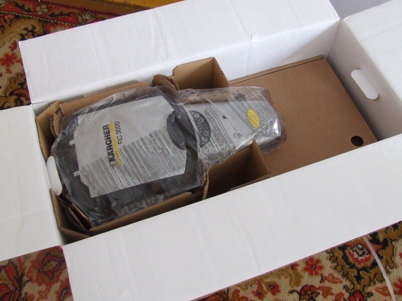 El paquete del dispositivo es minimalista, pero incluye todos los componentes necesarios para una limpieza de alta calidad de un apartamento o casa. La foto a continuación muestra el contenido del paquete de la Karcher RC 3000: