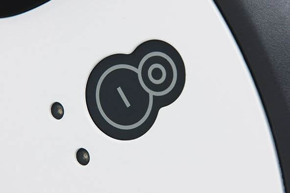Un vistazo rápido al robot aspirador revela los botones de control ubicados en el panel frontal. Solo hay dos botones: uno para encender y otro para apagar el dispositivo. El panel también contiene luces indicadoras y sensores infrarrojos.