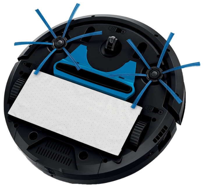 El Philips SmartPro Active cuenta con dos cepillos. Al girar, los residuos se empujan hacia el objetivo, donde se produce la succión. Los cepillos giran muy rápido, lo que permite al robot barrer todo a su paso. La ventaja de este diseño es que el motor del interior del robot aspirador está aislado del polvo que entra. Esto evita que el polvo se disperse alrededor del depósito, atrapándolo directamente en su interior.