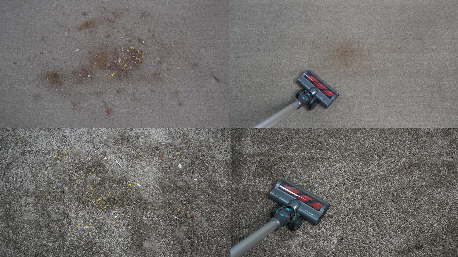 - Recogida de residuos de alta calidad sin puntos ciegos en cualquier superficie, incluidas alfombras.