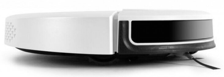 En la parte superior del cuerpo se encuentra una tapa, debajo de la cual se encuentra el depósito de recogida de polvo. Al observar el robot aspirador desde abajo, se aprecia el sistema cinemático: dos ruedas motrices y un rodillo de soporte giratorio para mayor maniobrabilidad. La unidad de limpieza consta de dos cepillos laterales, un cepillo principal central y un puerto de succión. La parte inferior del cuerpo alberga una plataforma de montaje para el módulo de limpieza en húmedo y un botón de encendido/apagado.