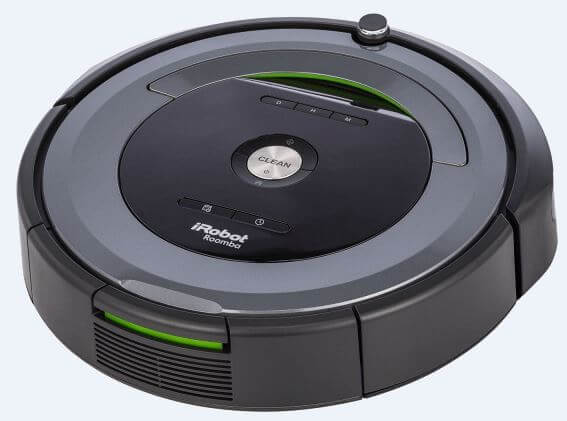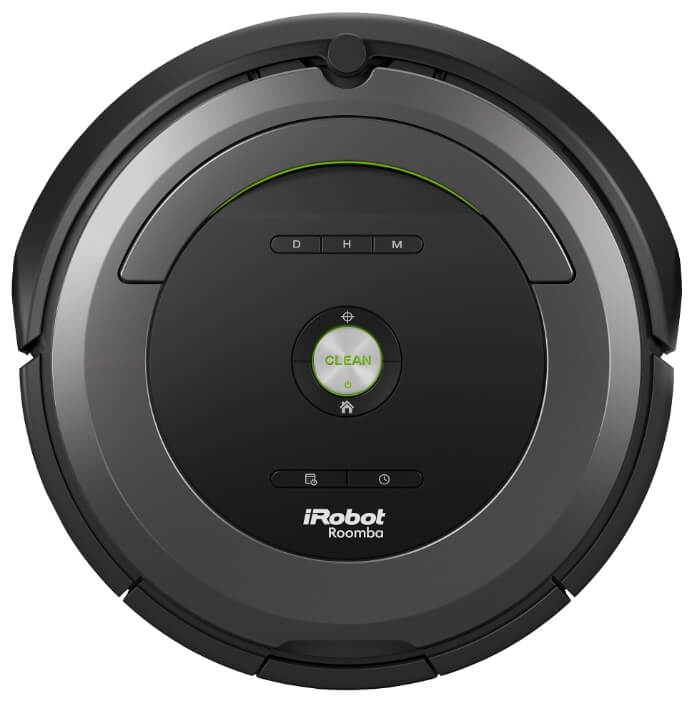 La foto muestra una descripción general del aspecto del robot aspirador Roomba 681: