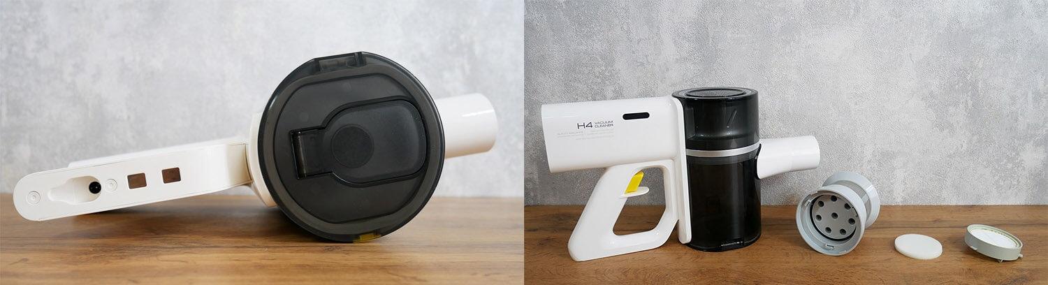 La sección inferior contiene la bolsa para el polvo. Tiene una capacidad de 2,5 litros, que debería durar al menos un mes con un uso activo.