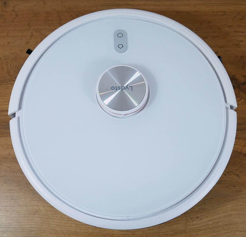La cubierta superior contiene dos botones de control mecánicos. El lidar se encarga de la navegación y cuenta con un botón mecánico para evitar que el robot se quede atascado debajo de los muebles.