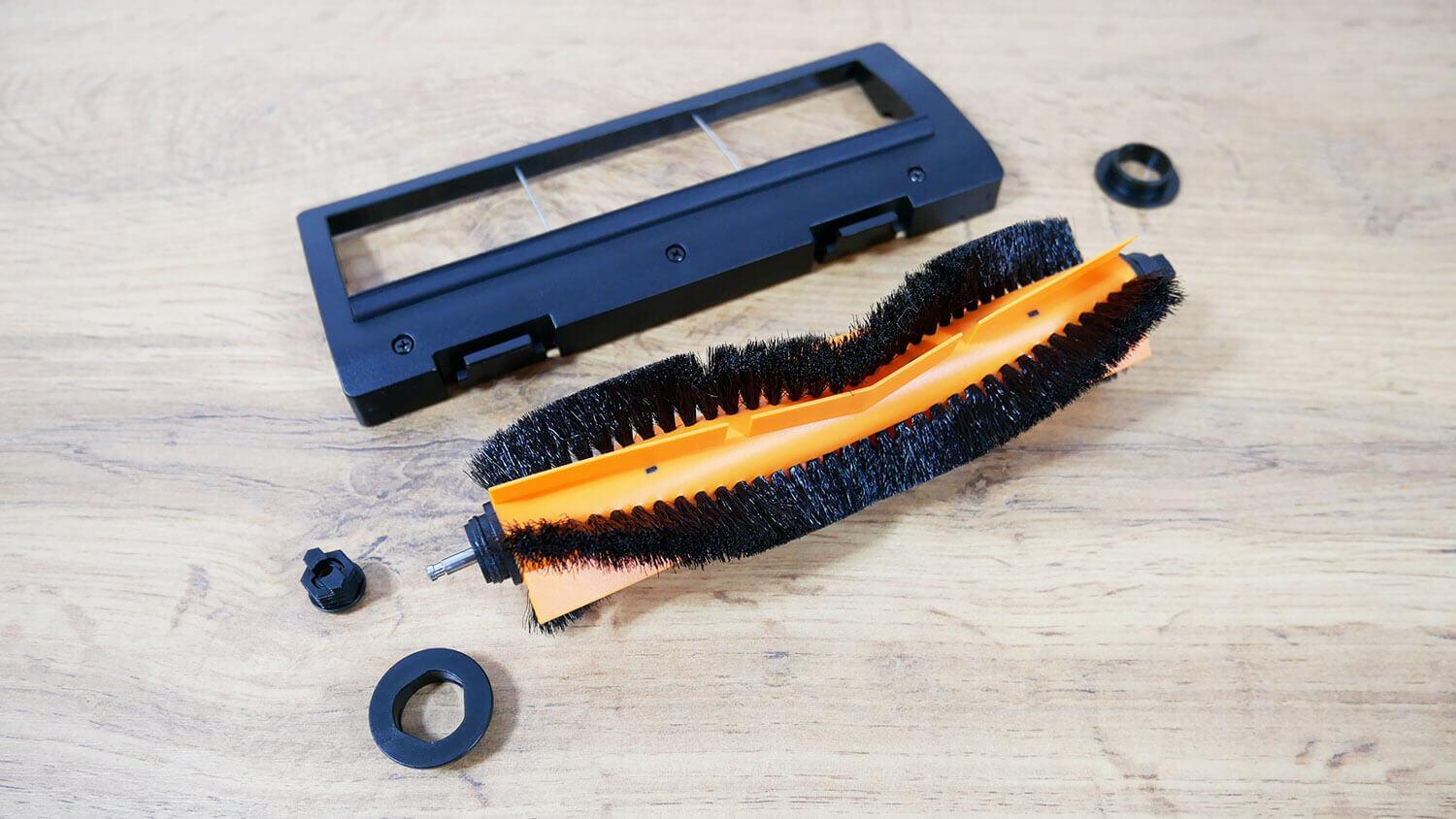 El robot cuenta con tres sensores de protección contra caídas montados en la parte inferior. Sorprendentemente, cuenta con dos cepillos laterales de tres haces y de liberación rápida.