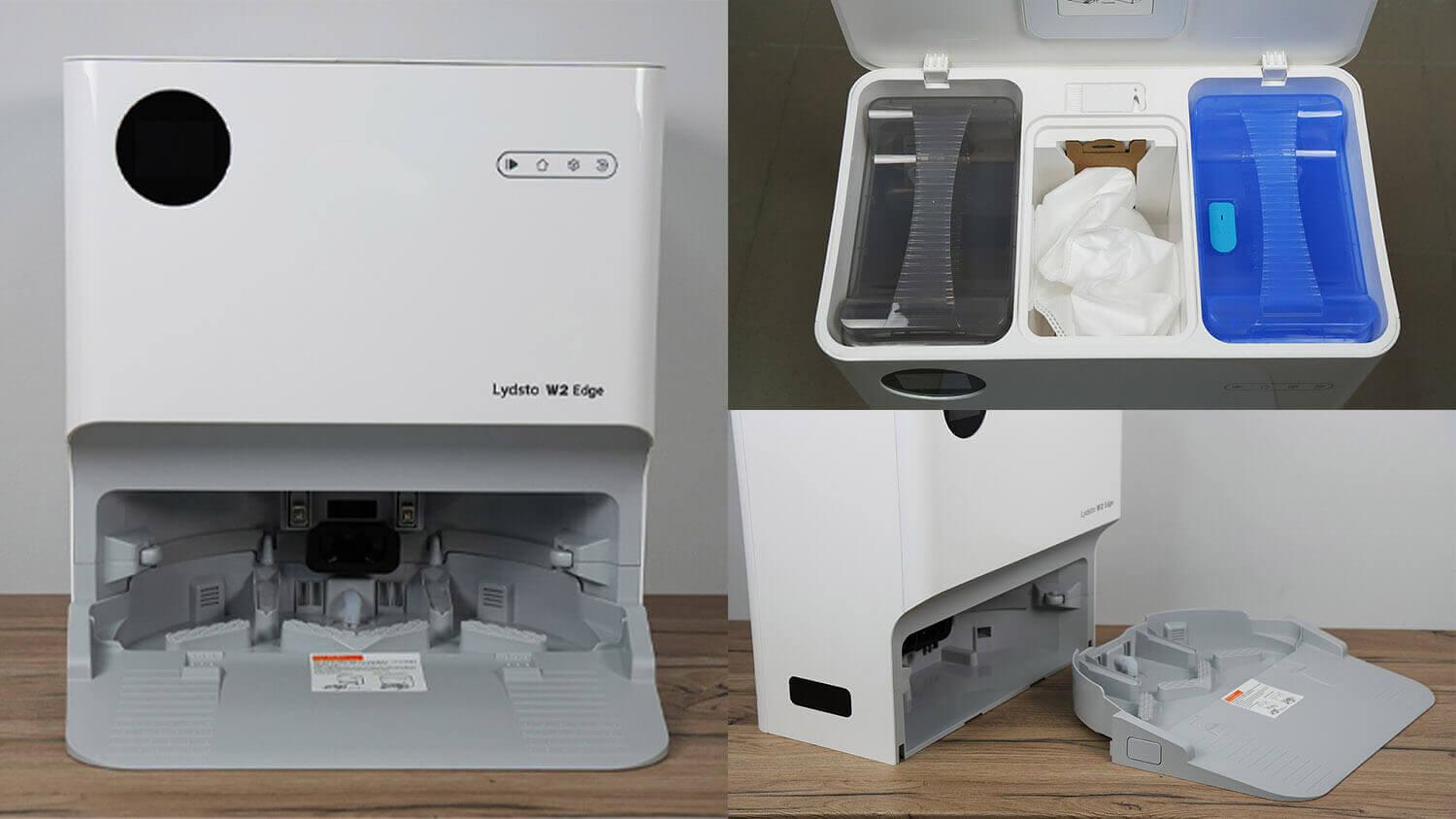 En la propia estación Lydsto W2 Edge, las toallitas se lavan con agua caliente, se secan con aire caliente y el depósito de polvo se limpia solo. También se ha instalado un sistema de esterilización de residuos, pero no puedo verificar la eficacia de la desinfección. Los ingenieros de Lydsto también han implementado la desinfección del agua mediante iones de plata.