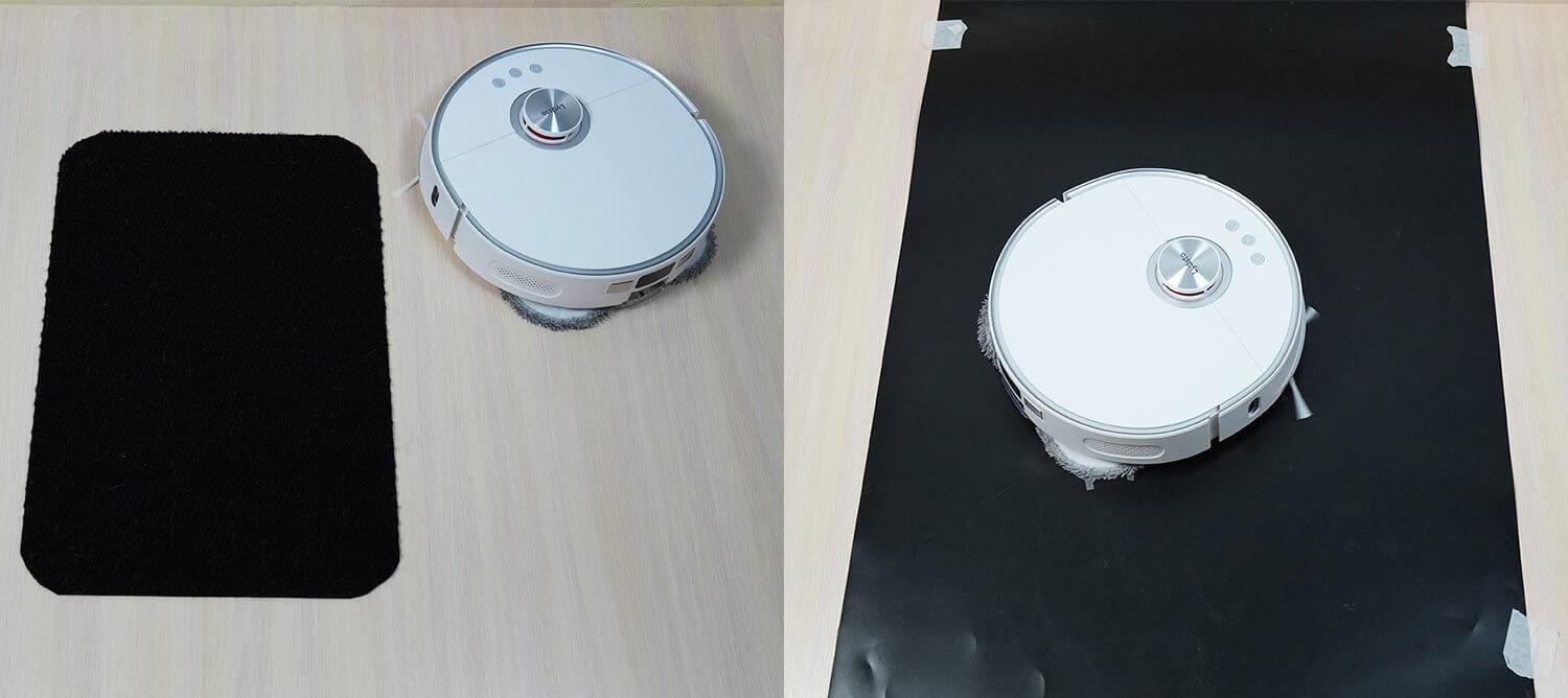 El robot aspirador es sensible a las alfombras negras, detectándolas por diferencias de altura, como la mayoría de los demás robots aspiradores. Es importante tener esto en cuenta. Sin embargo, este problema no se presenta en superficies negras duras.