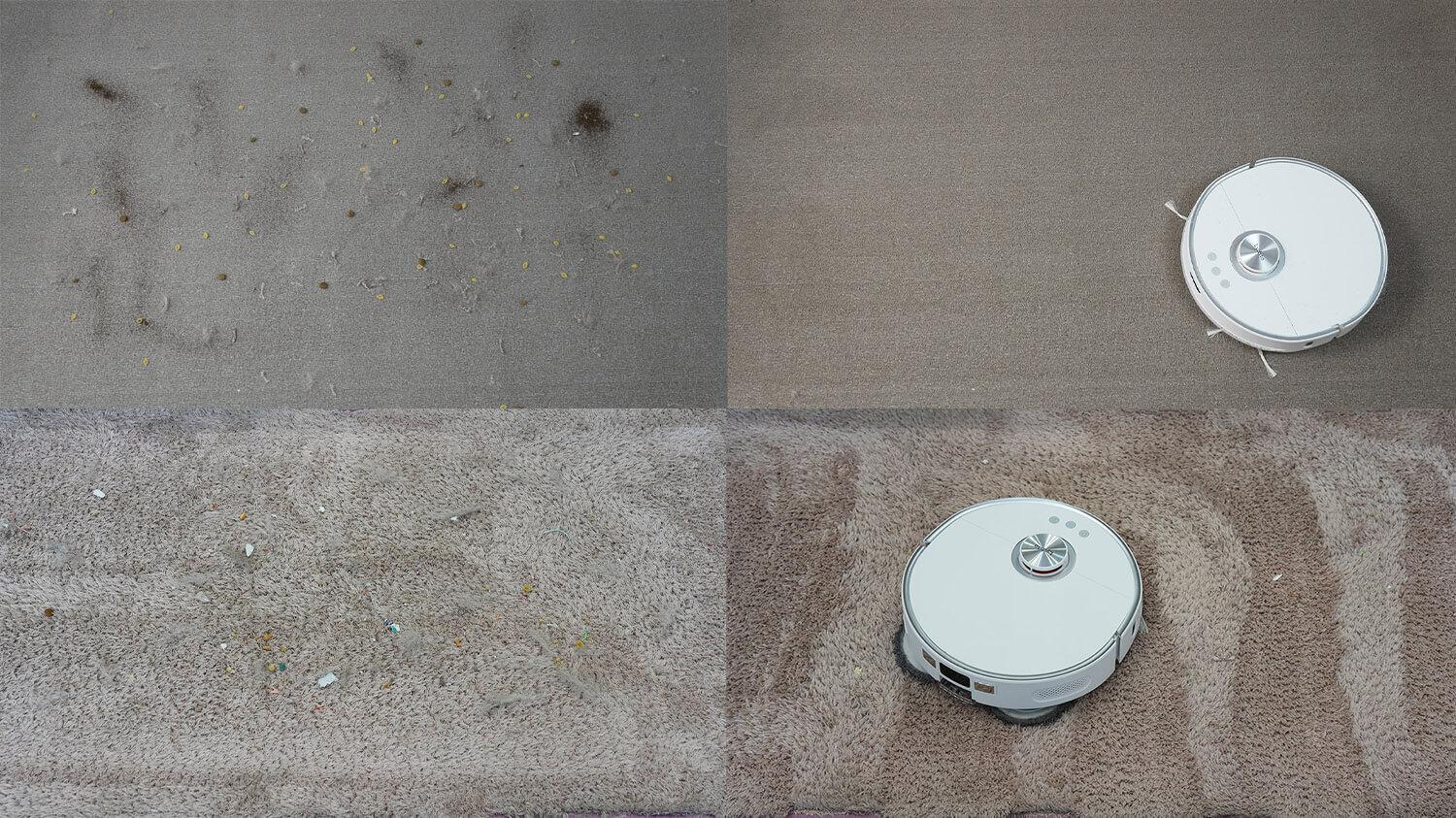 Los mismos residuos se esparcieron sobre una alfombra de pelo corto. Puedo decir que la Lydsto W2 Edge la limpió a fondo. También puede limpiar alfombras de pelo medio, pero no con la misma eficacia.