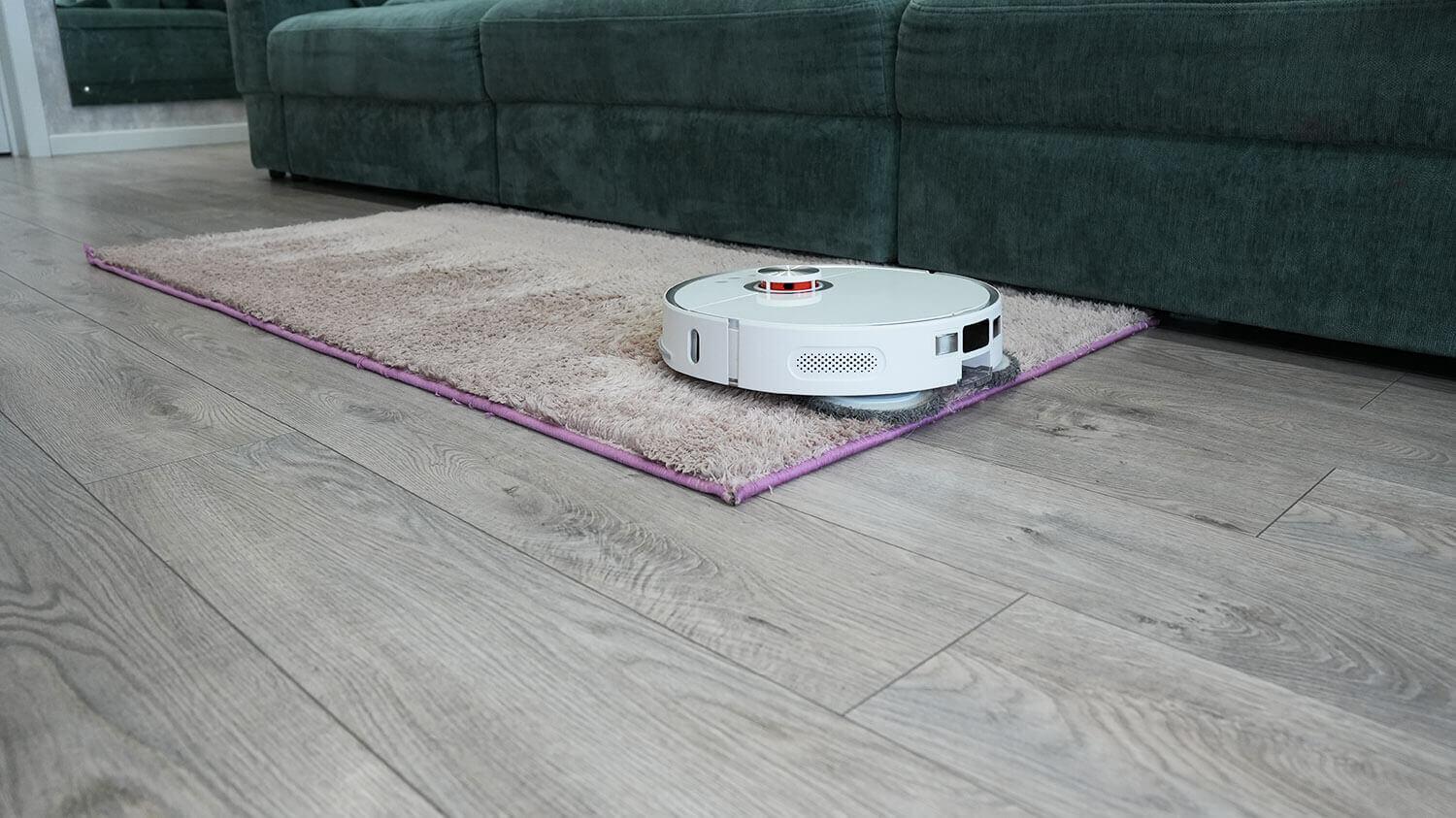 En primer lugar, la altura de elevación de las almohadillas es inferior a 10 mm, y estas, aunque no están apretadas, pueden entrar en contacto con pelo medio. En segundo lugar, la función de elevación de las almohadillas no se activa inmediatamente al entrar en la alfombra, sino después de 20-30 cm, lo que puede provocar que los bordes de la alfombra se rayen con las almohadillas giratorias mojadas. Y en tercer lugar, durante las pruebas, el robot soltó repetidamente la almohadilla al intentar entrar en una alfombra, tras lo cual se produjo un error. Por lo tanto, si este problema persiste, recomiendo activar el modo automático de evitación de alfombras, que permitirá que el robot aspirador detecte la alfombra y la evite sin mojar las almohadillas.