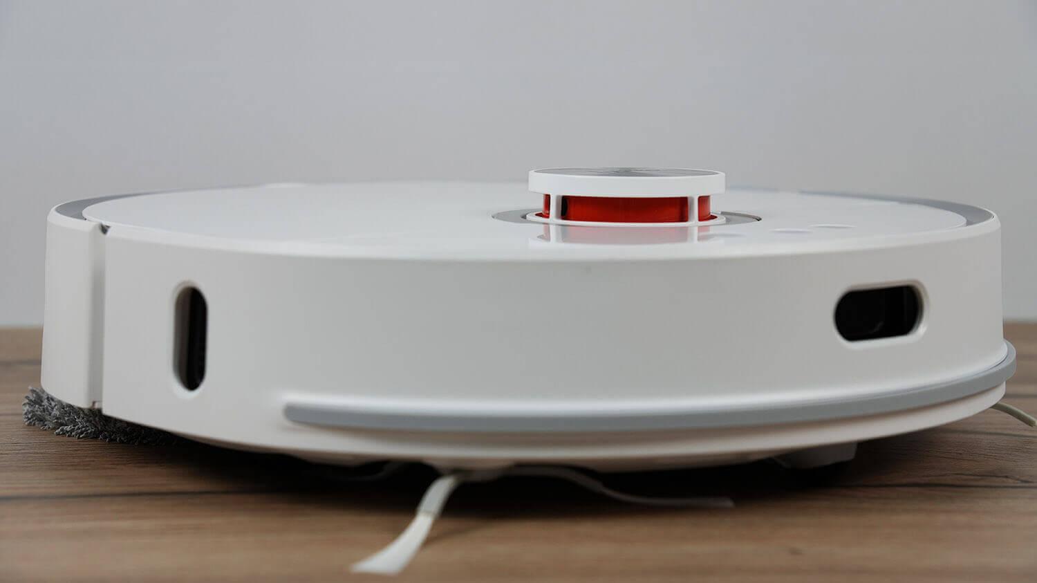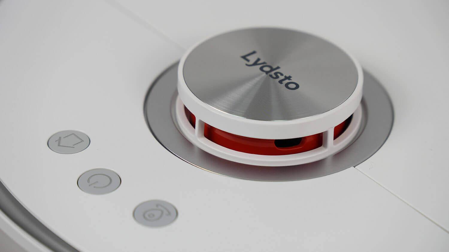 El panel de control cuenta con tres botones mecánicos en la parte superior. El lidar cuenta con una cubierta con resorte para evitar que el robot se quede atascado debajo de los muebles.