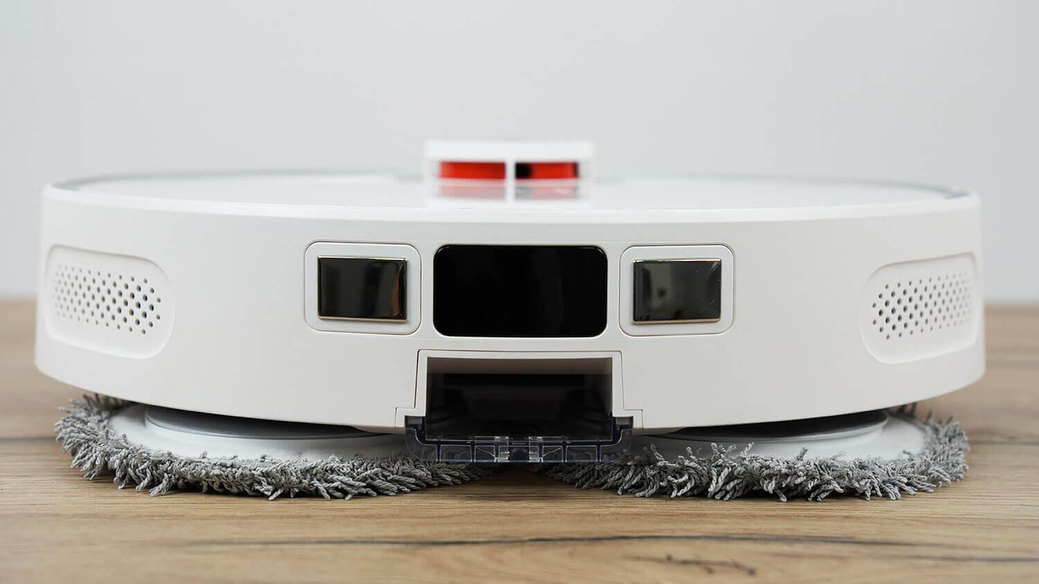 Hay cuatro sensores de protección contra caídas en la parte inferior del cuerpo. Junto al rodillo giratorio hay un sensor de detección de alfombras. Esto es una ventaja. Hay dos cepillos laterales. Es una pequeña ventaja, pero sigue siendo una ventaja con respecto a productos similares.