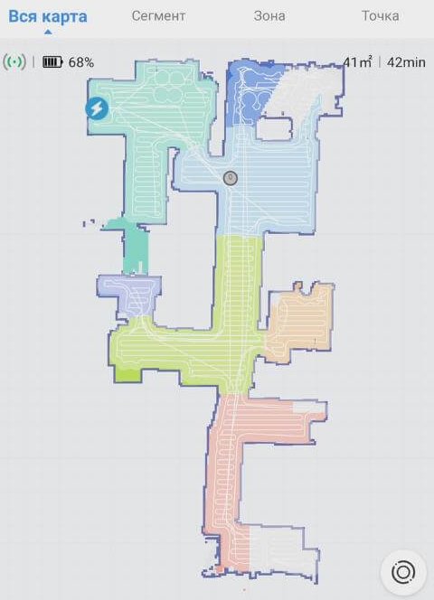 Hablando de navegación, decidí darle al robot una tarea más desafiante, ya que hubo quejas sobre la navegación del modelo anterior de EVE Plus. Abrí una nueva zona para el mapa guardado que el robot no había visto antes. El Roidmi EVA limpió habitación tras habitación, primero a lo largo del perímetro y luego en un patrón serpenteante, limpiando el paño cada 9 minutos. Durante este proceso, escaneó las nuevas zonas, las agregó al mapa, las limpió y las guardó. Así que este modelo tiene buena navegación. ¡Prueba exitosa!