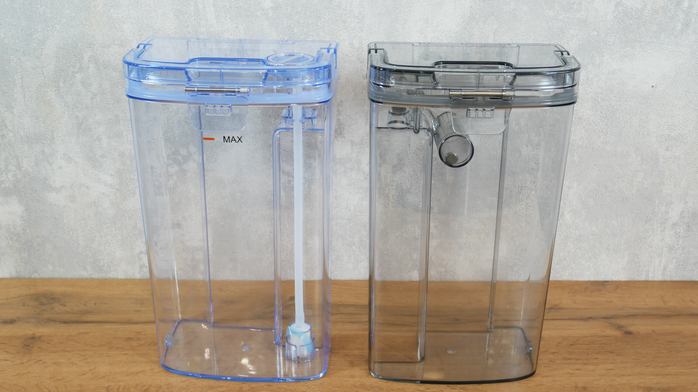 Los depósitos son bastante grandes en comparación con modelos similares, con capacidad para hasta 4 litros de agua cada uno. La bolsa también es más grande, con capacidad para hasta 3 litros de residuos secos.