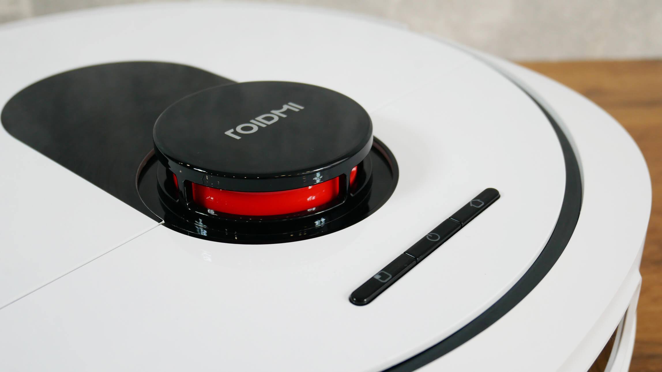 Echemos un vistazo al diseño del Roidmi EVA. Empecemos por el robot aspirador. Su cuerpo tiene una forma inusual: cuadrado con esquinas redondeadas. Este diseño debería mejorar la limpieza en las esquinas. En nuestras pruebas, comprobaremos su rendimiento.