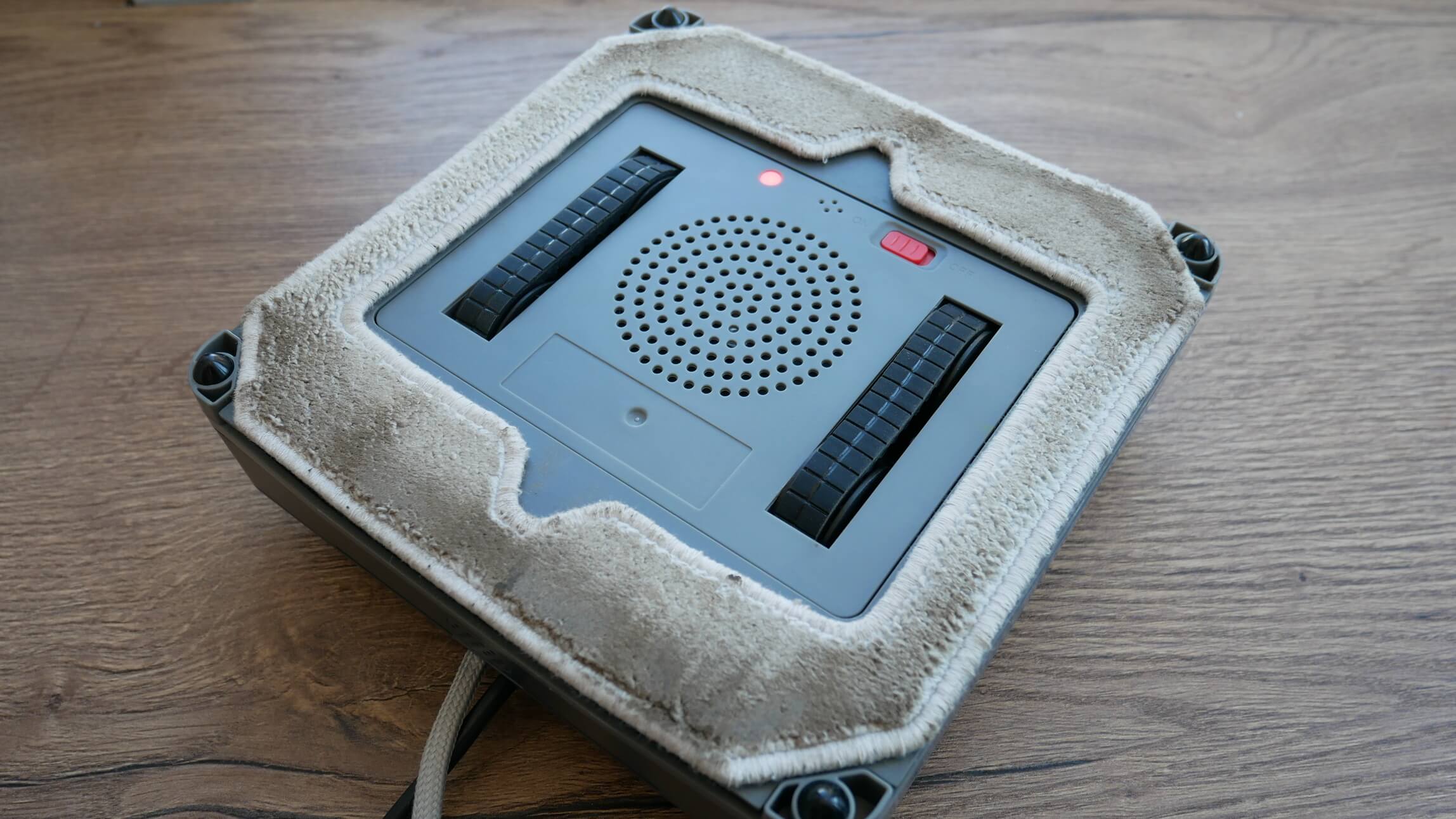 Como puede ver, el robot recogió la mayor parte de la suciedad y el polvo del paño. Cabe destacar que limpia a fondo la zona del junquillo, pero, al igual que otros robots limpiacristales, no puede limpiar las esquinas debido a los sensores anticaída instalados en los bordes. No obstante, la calidad de la eliminación de suciedad es comparable a la de la mayoría de los robots similares.