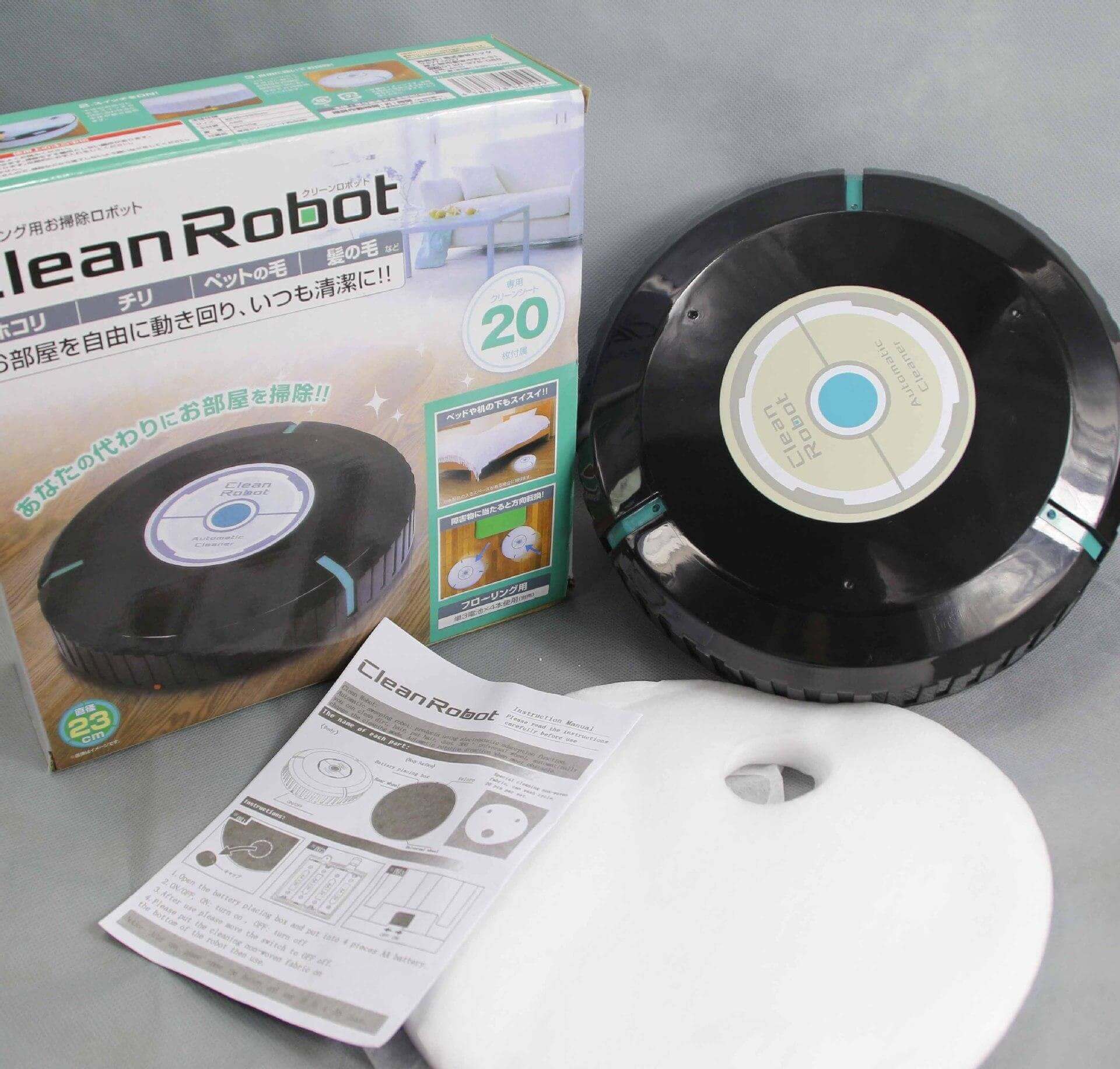 El Clean Robot incluye una mopa robótica y veinte paños de microfibra reutilizables. Funciona con cuatro baterías, que se colocan debajo del compartimento de la batería en la parte inferior del dispositivo. Estas baterías no están incluidas. Comprar baterías adicionales es fácil. También incluye un manual de usuario en chino.