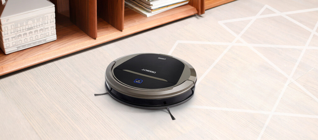 El robot aspirador DeeBot DM81, que se muestra en la foto, revela un diseño clásico y minimalista que complementará y realzará cualquier interior. Su tradicional cuerpo redondo está hecho de plástico resistente. Su tamaño compacto le permite moverse con rapidez y llegar a zonas difíciles de alcanzar, como debajo de los muebles y esquinas.
