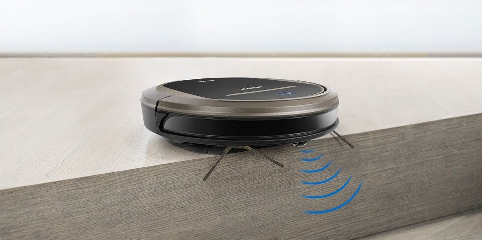 El robot aspirador DeeBot DM81 se desplaza por su entorno mediante infrarrojos. Sus sensores anticaídas y anticolisión integrados le permiten desplazarse con seguridad por la casa, adhiriéndose a los bordes de escaleras y podios, evitando colisiones con objetos interiores y previniendo daños mecánicos.