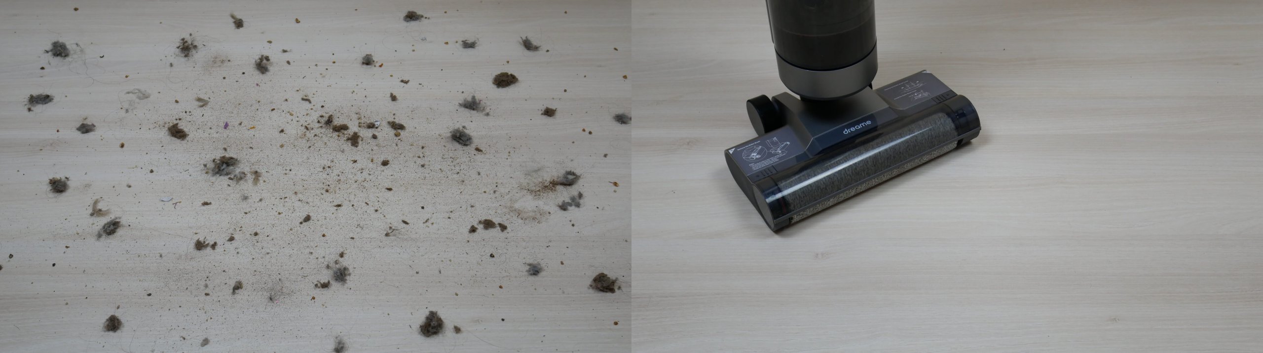 A la hora de recoger diversos tipos de residuos en suelos laminados, la Dreame H11 Max lo hace con facilidad. Es capaz de recoger no solo pequeños residuos domésticos, sino también pelos de mascotas. Cabe destacar que el rodillo apenas recoge pelos de mascotas. ¡Prueba superada!
