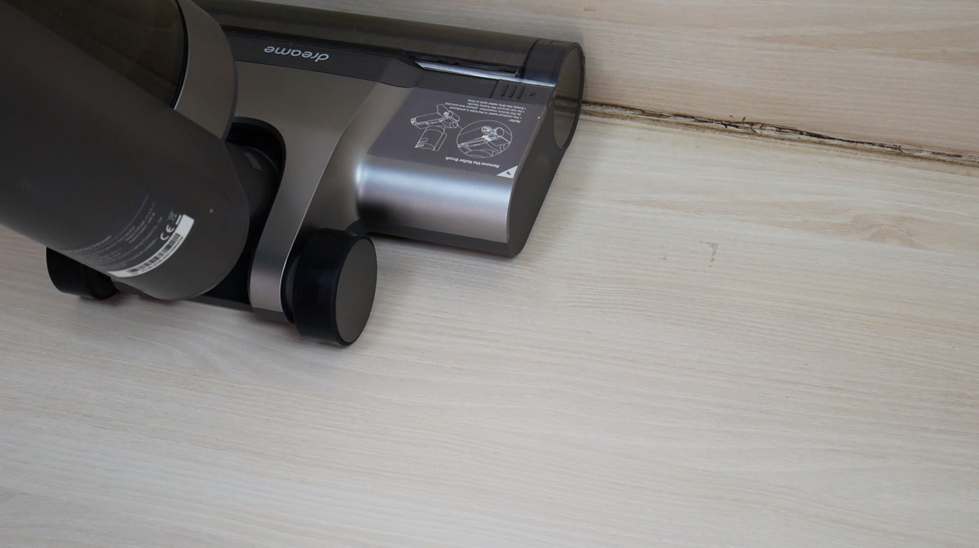 Ahora, pasemos a las pruebas. Primero, comprobemos la potencia de succión de la Dreame H11 Max. No añadí agua para comprobar su capacidad de aspiración en seco. Consiguió aspirar suciedad de grietas de hasta 10 mm de profundidad, comparable a la de las aspiradoras verticales estándar. Hasta ahora, puedo afirmar que es una aspiradora realmente potente para limpiar suelos.