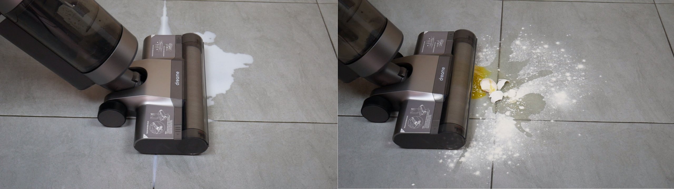 La Dreame H11 Max es ideal no solo para recoger líquidos, sino también diversas mezclas, como la tradicional masa de huevo y harina. Tritura las cáscaras de huevo y recoge toda la pulpa del suelo. ¡Excelentes resultados!
