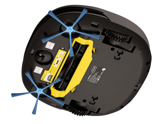 El depósito de polvo se encuentra bajo la cubierta frontal del robot, que se abre con una suave presión. El parachoques rodea el cuerpo del dispositivo y alberga numerosos sensores, como sensores de ángulo de la habitación, sensores de altura y sensores de detección de obstáculos.