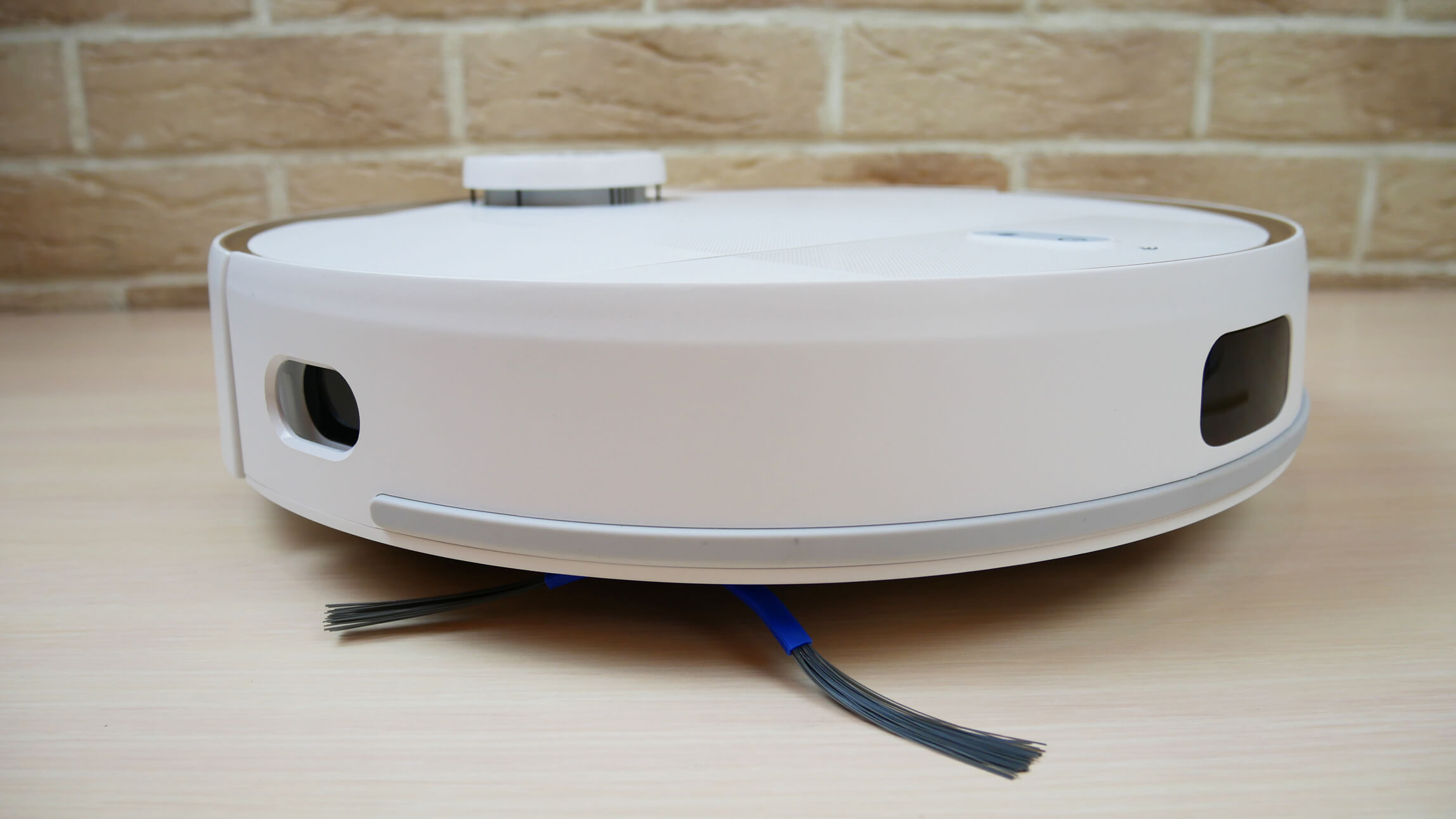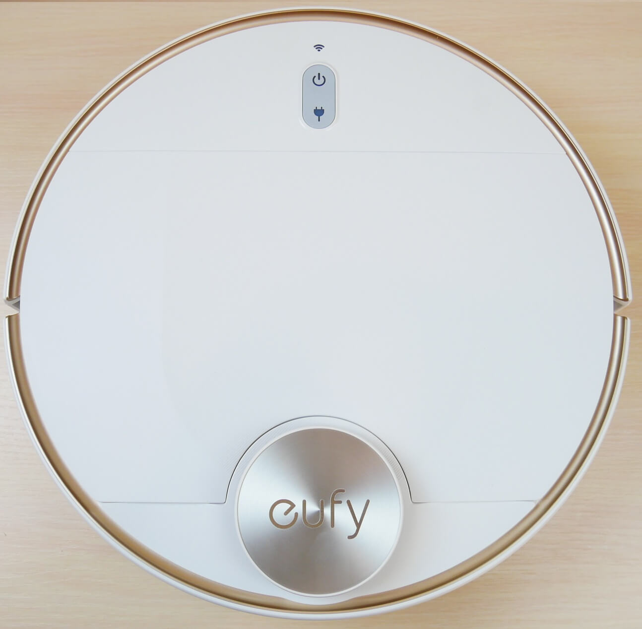Ahora veamos la apariencia del Eufy RoboVac L70 Hybrid. Es blanco con detalles en bronce y un sensor lidar. ¡Tiene un aspecto muy elegante!