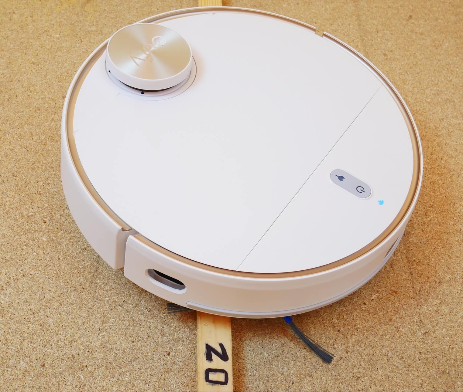 El lidar cuenta con un botón para evitar que el robot aspirador se quede atascado debajo de los muebles. La cubierta superior alberga un indicador de conexión wifi, un botón de inicio/pausa y un retorno forzado a la base de carga.