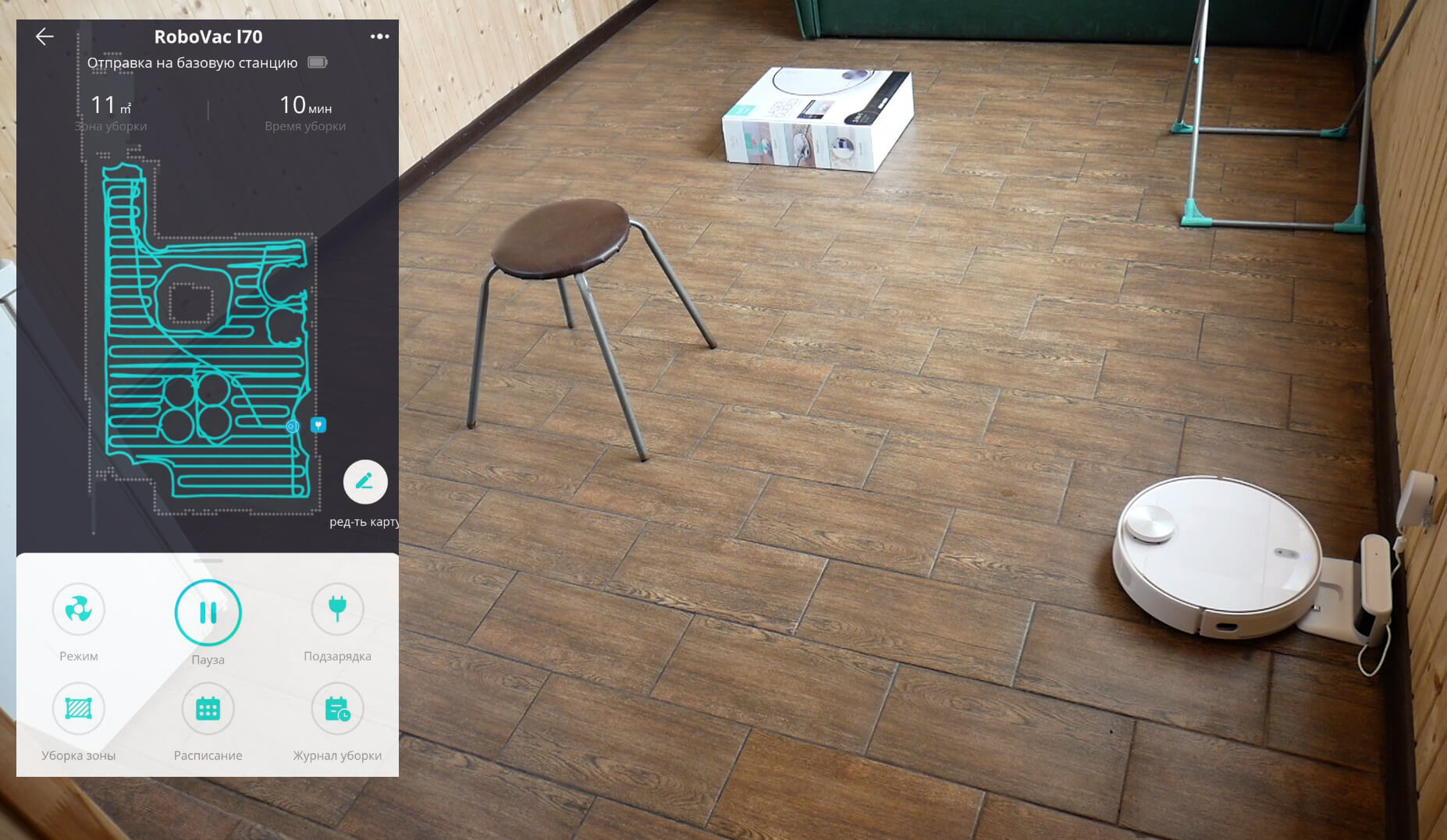 En cuanto a la navegación general de la casa, el Eufy RoboVac L70 Hybrid divide el área en zonas convenientes y limpia zona por zona, primero a lo largo del perímetro y luego en un patrón serpenteante. La velocidad de limpieza es estándar y no deja zonas sin limpiar, así que no hay quejas sobre el robot en este aspecto.