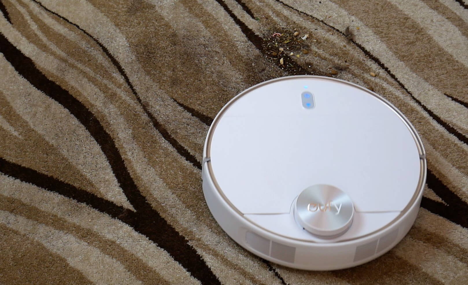 La calidad de la recolección de residuos en la alfombra también fue superior a la media. El robot recogió todos los residuos derramados y superó la prueba.