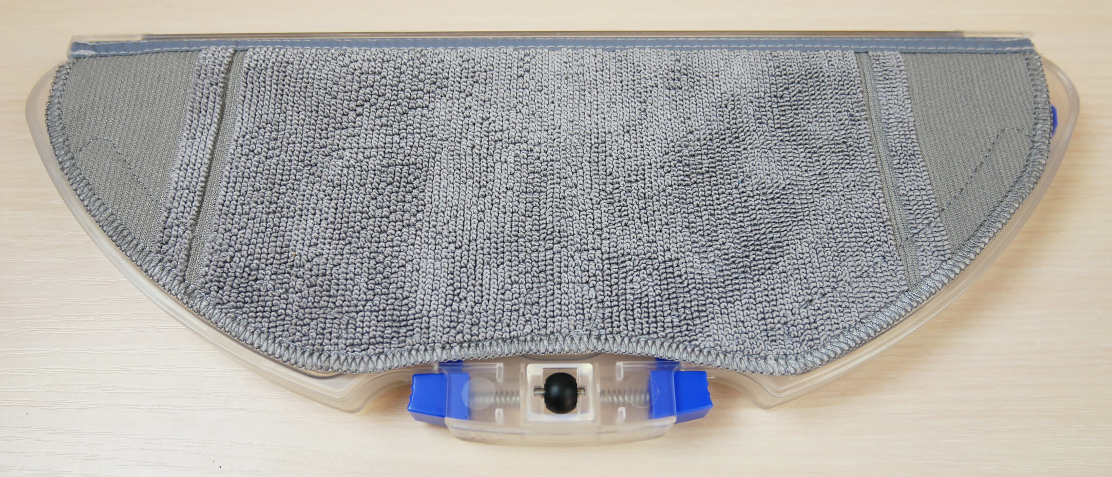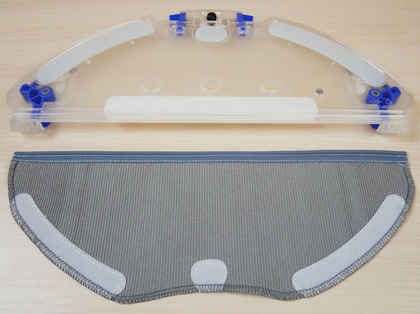 La servilleta se fija de forma muy cómoda gracias a una ranura y velcro, como se implementa en los robots de Xiaomi.