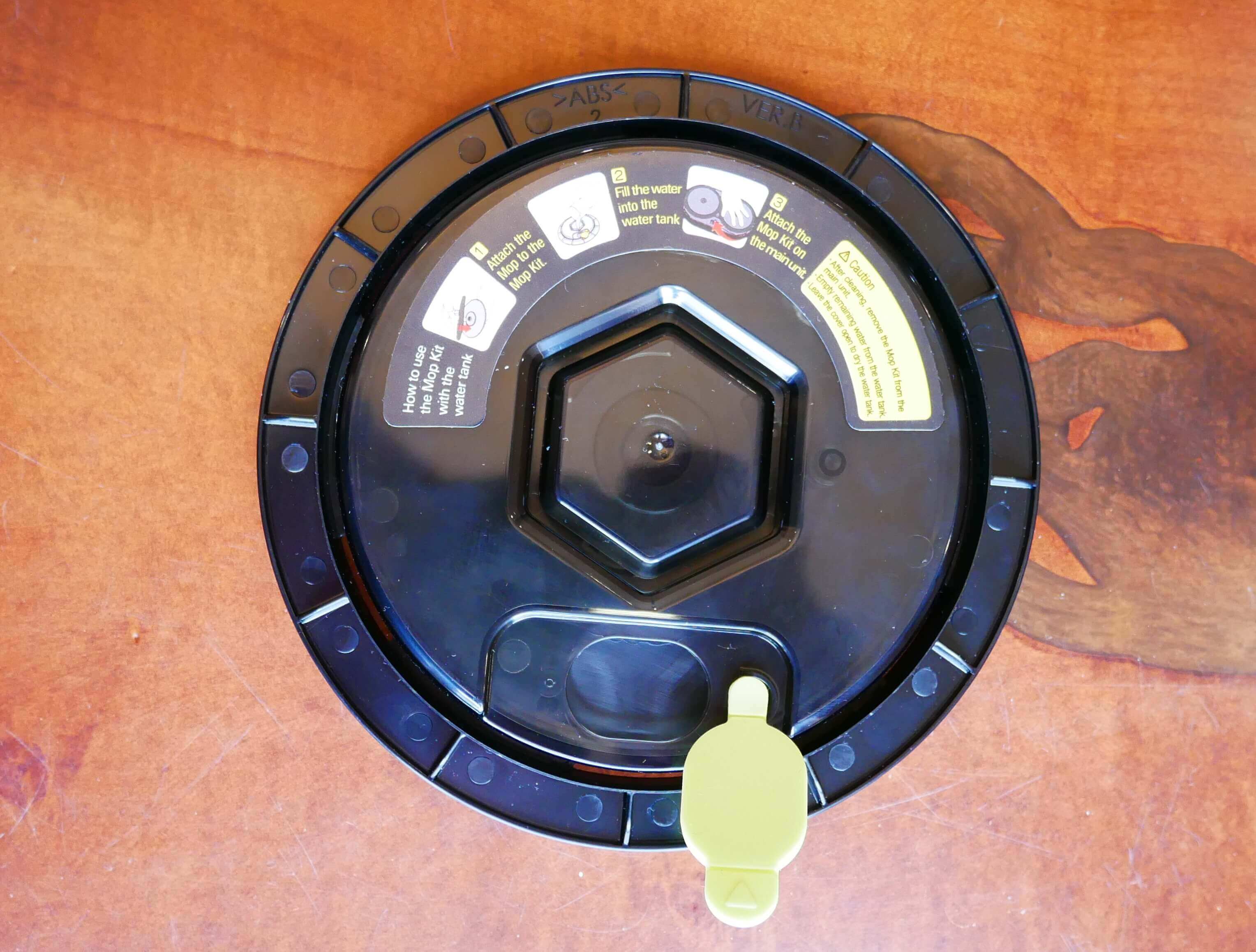 Si giras el robot trapeador boca abajo, podrás ver los discos giratorios para fijar el panel de limpieza en la parte inferior.