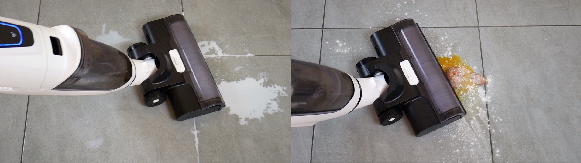 También les mostraré cómo la Genio Magic Wash T10 procesa líquidos y mezclas del suelo, usando leche y mi masa favorita, hecha con huevo crudo y harina, como ejemplos. Está a la altura.