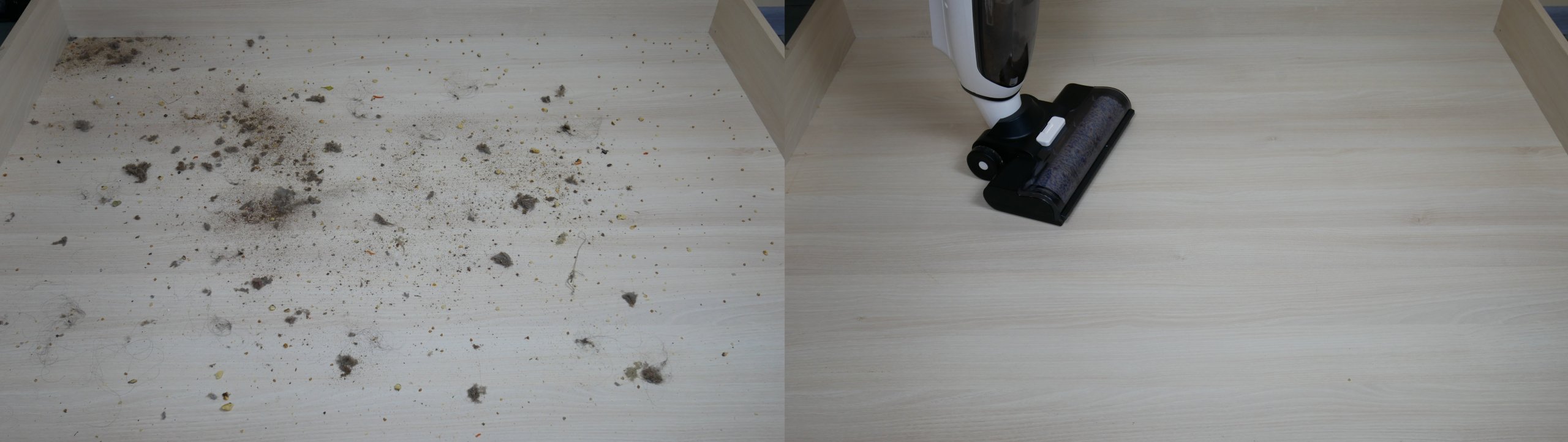 El rendimiento de limpieza en seco en pisos laminados es excelente. La Genio Magic Wash T10 puede recoger una amplia gama de residuos, incluso limpiando a fondo zócalos y esquinas. ¡Pasó esta prueba con éxito!