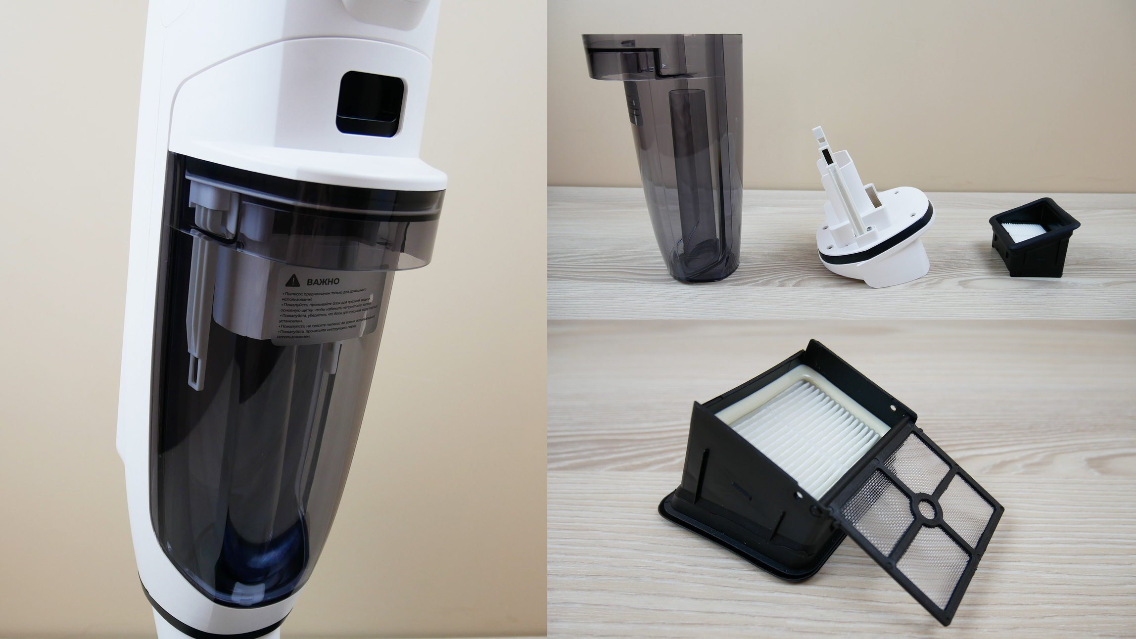 Pero en condiciones domésticas normales, cuando la aspiradora no se ensucia demasiado, su autolimpieza es buena. El rodillo y el canal de succión se enjuagan fácilmente con agua. Simplemente drene el agua sucia del depósito y, si es necesario, retire y seque el rodillo.