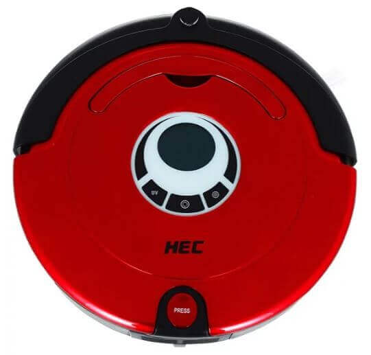 El robot aspirador HEC MRC510 es una réplica exacta del Xrobot XR-210 Red; tanto el diseño como las especificaciones son idénticos. El cuerpo principal es de plástico rojo, el parachoques blando es negro y la pantalla es blanca con botones táctiles negros. El nombre del fabricante también aparece en negro en el dispositivo.