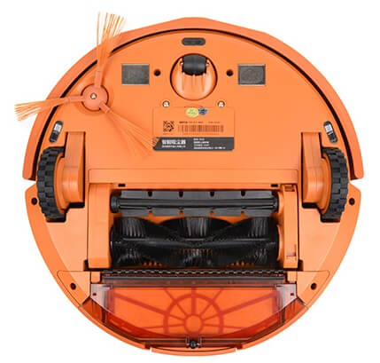 El robot tiene cuatro ruedas: dos ruedas motrices y dos ruedas de apoyo (una en la parte delantera y una pequeña rueda en la parte trasera, en el contenedor para recoger el polvo y los residuos).