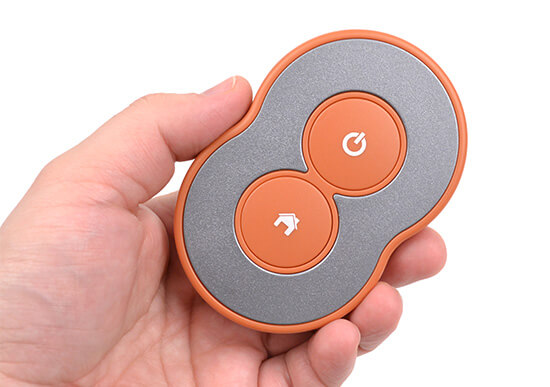 - Uso de un control remoto inalámbrico. Este control remoto consta de dos botones: funcionamiento automático y retorno del dispositivo a la estación de carga. El control remoto se puede operar a distancia, independientemente de la visibilidad del dispositivo.